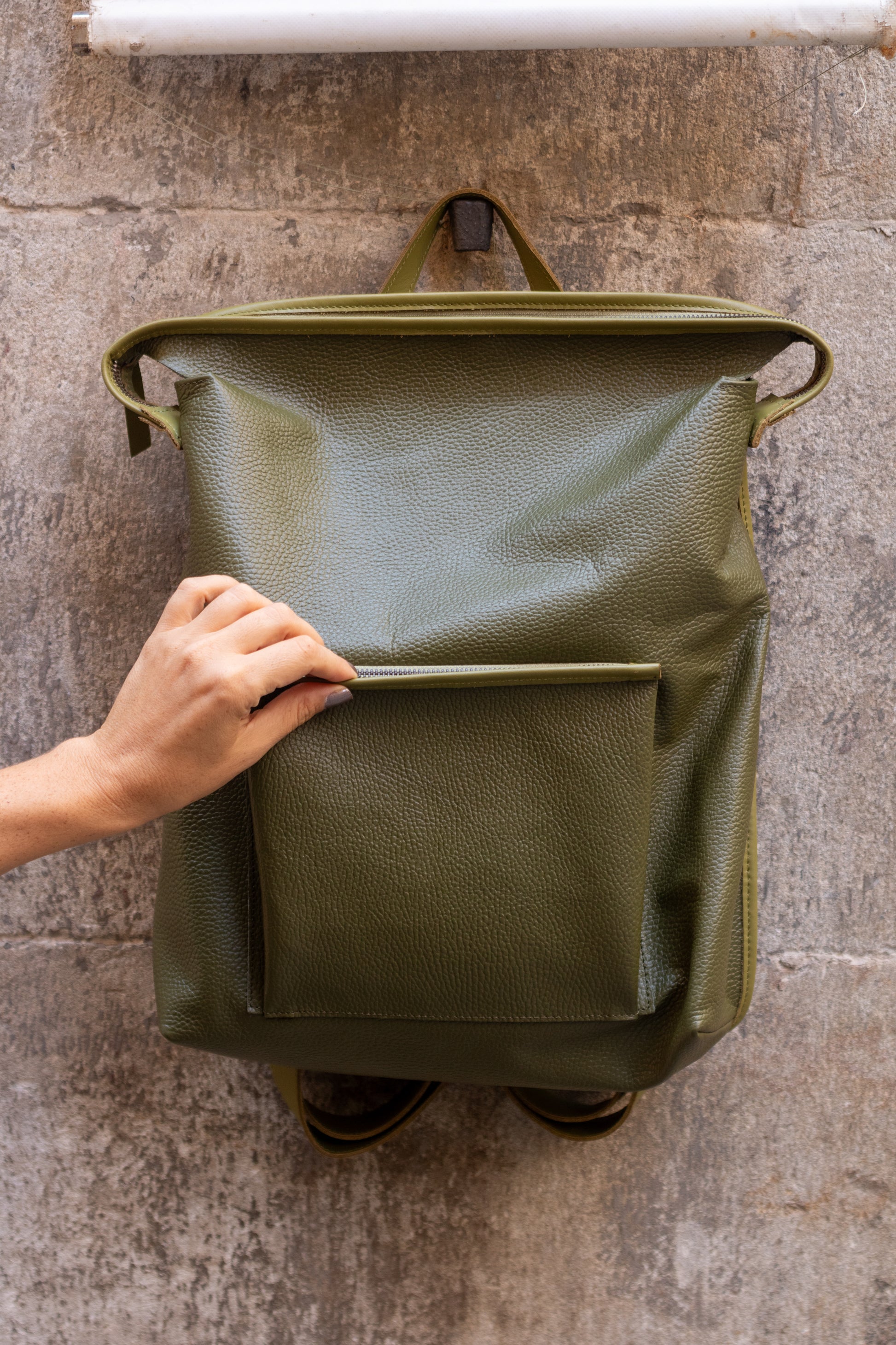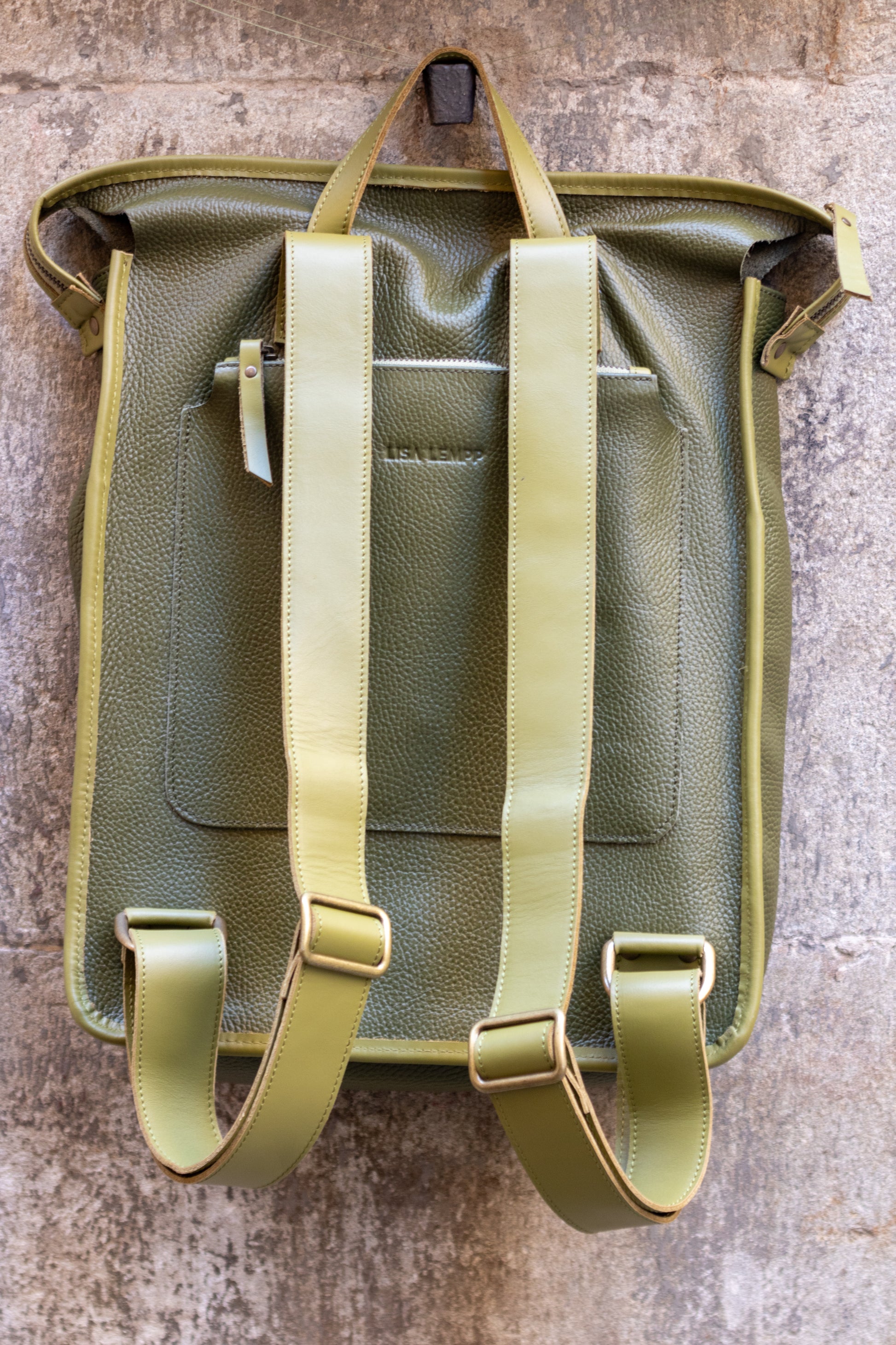 De diseño sobrio y con cantos ribeteados en verde claro, esta mochila, para él y ella, es cómoda, ligera y tiene varios bolsillos y detalles funcionales. Una mochila para toda la vida, vaya.