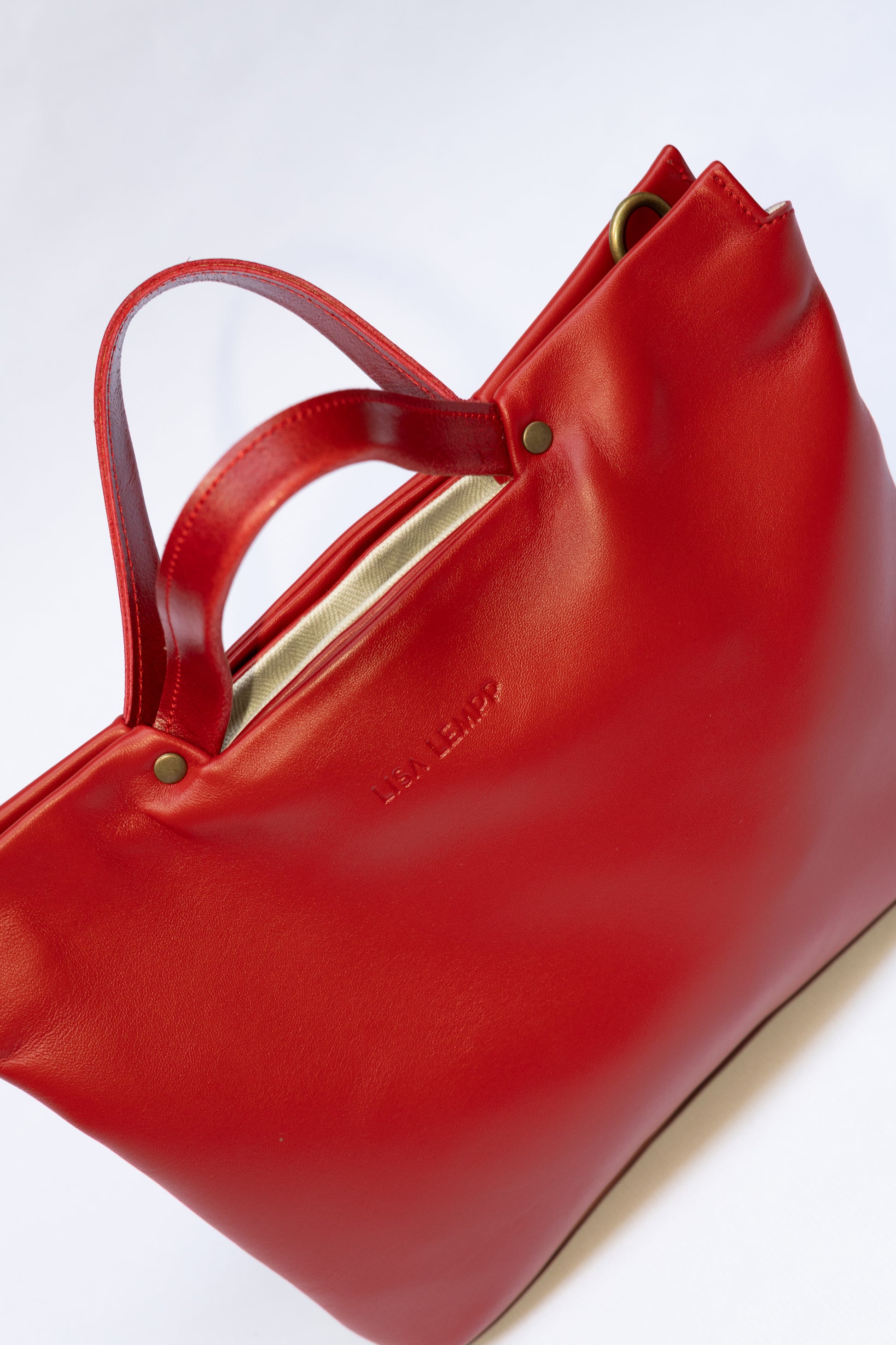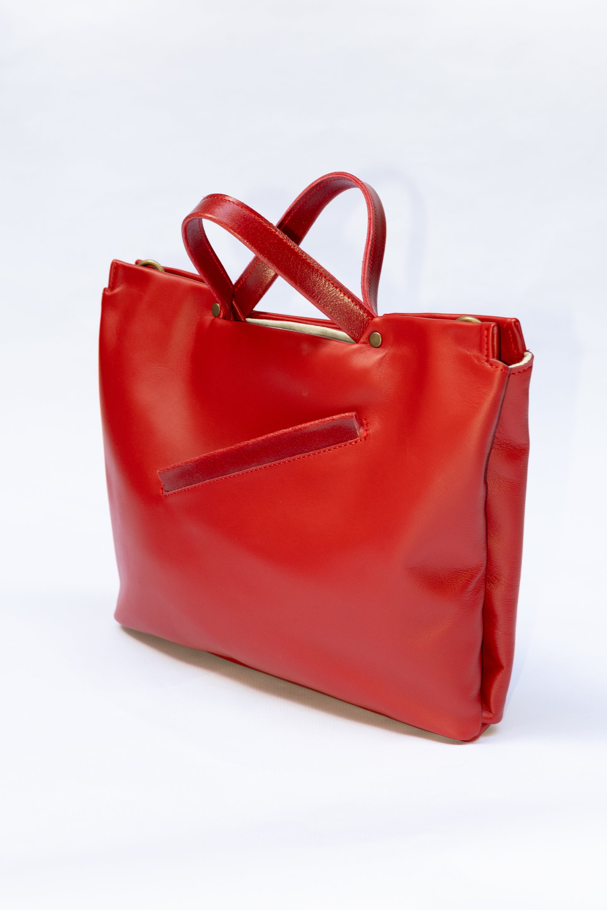 Exterior: Piel Italiana de vacuno con brillo. Color rojo.