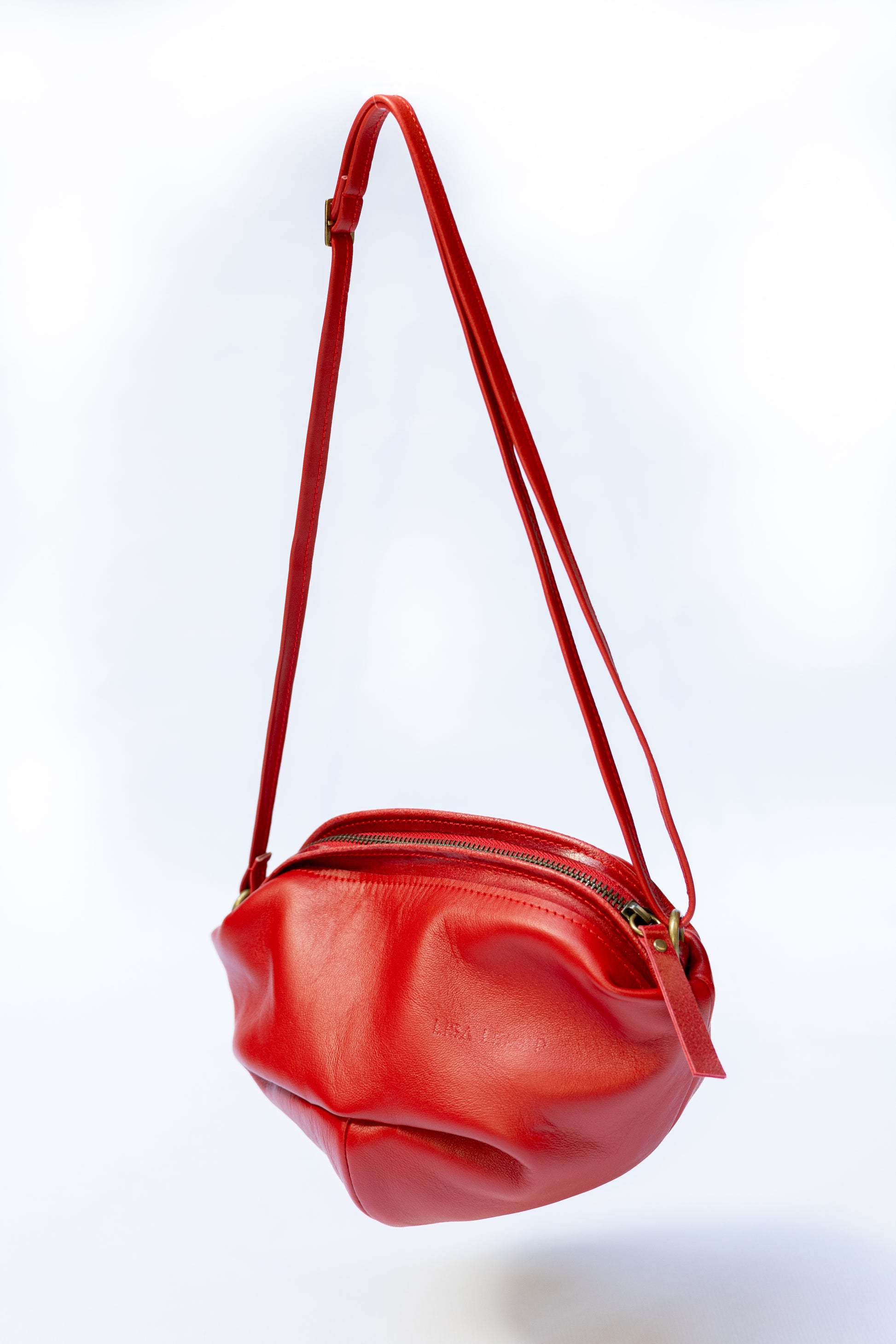 Bandolera en piel Sally es más bien pequeño, pero con gran capacidad gracias a la construcción de pliegues. Su forma que recuerda un corazón lo convierte en un accesorio adorable.