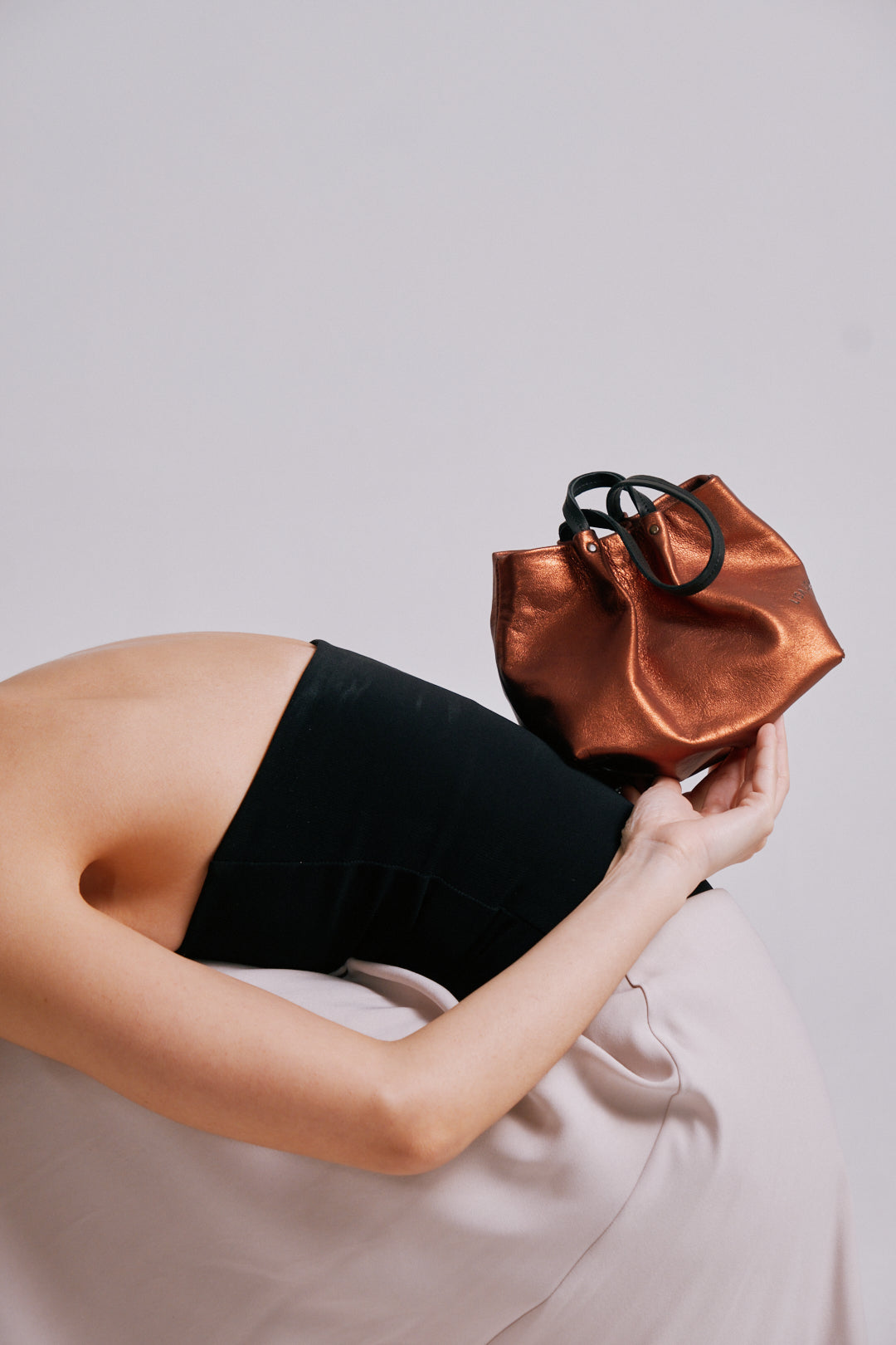 Exterior: Napa Italiana muy ligera y suave en color cobre.